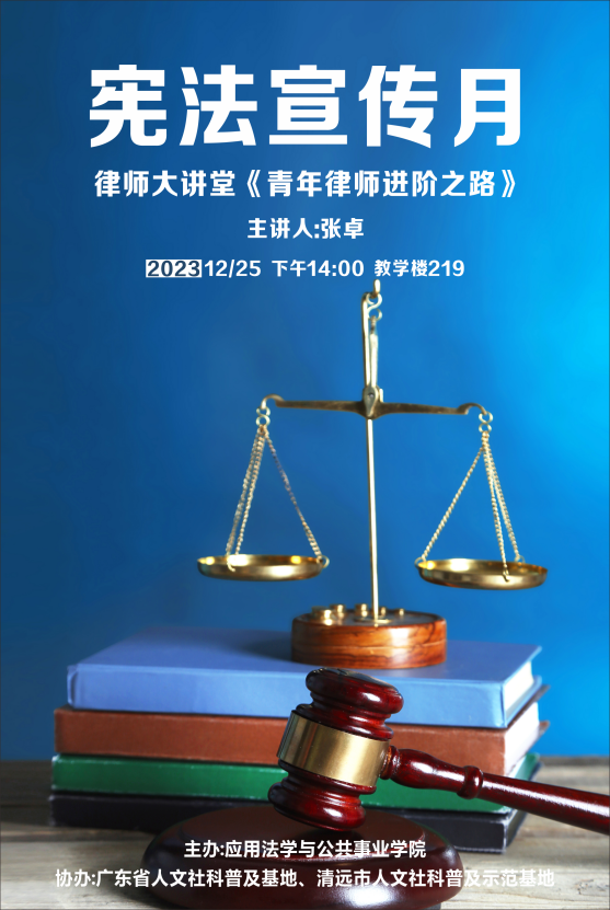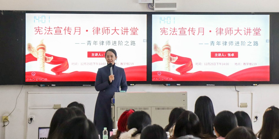 紧接着,12月25日下午14时,第二场讲座《青年律师进阶之路》在清远校区教学楼219拉开帷幕。本次讲座我们有幸邀请到了业内杰出的青年律师张卓作为主讲人。