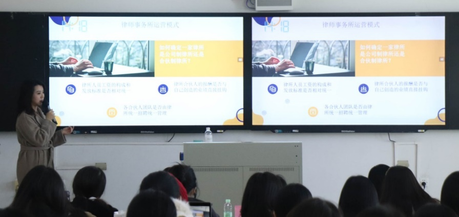 张律师以自身鲜活的成长经历为切入点,深情分享了从律师新手到业界翘楚的奋斗历程。她特别强调了有效沟通在律师职业中的核心地位,并通过解析律师与律师事务所、客户及法官之间复杂而微妙的沟通关系,为同学们提供了宝贵的职业启示。此外,张律师还针对同学们即将面临的从学生到实习律师的角色转变给予了悉心指导和建议。