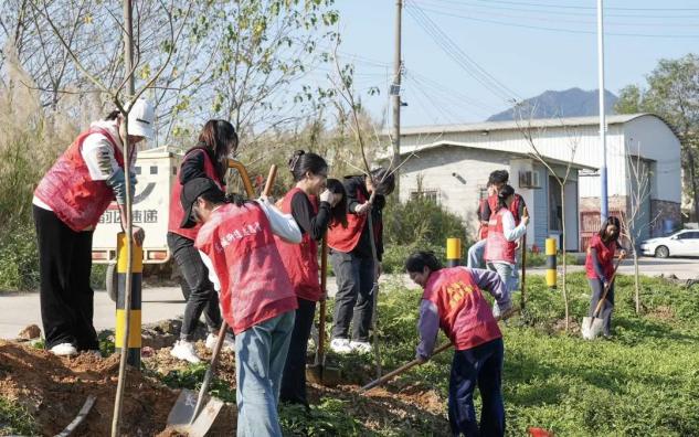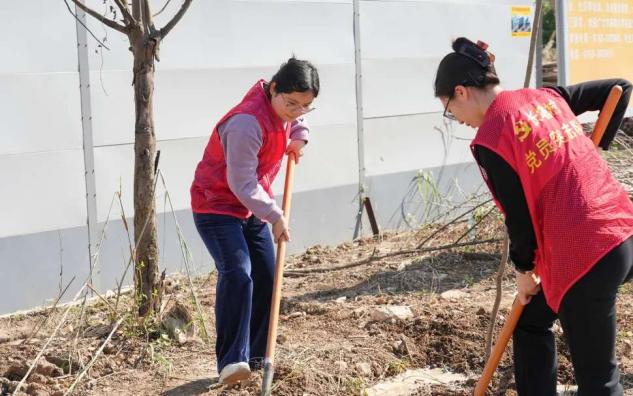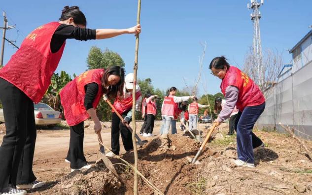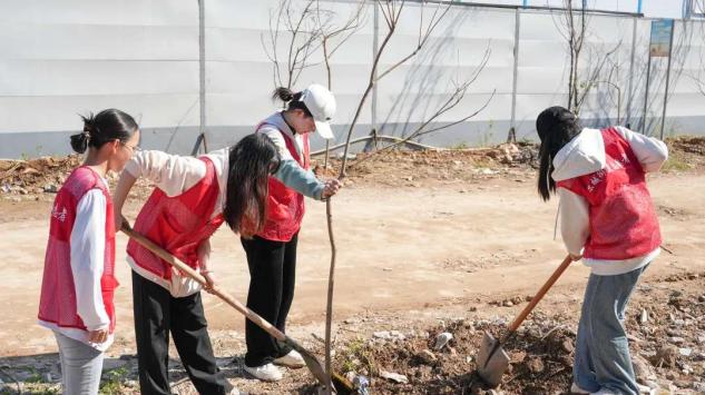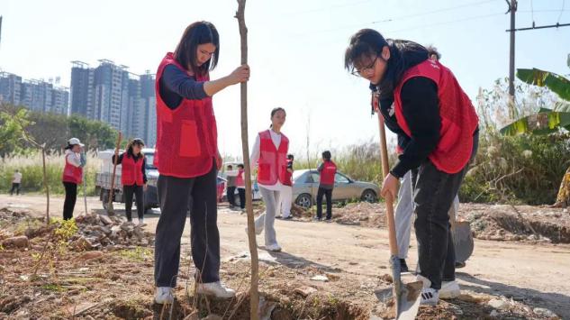活动现场,大家挖坑、扶苗、填土、浇水,现场一派热火朝天的劳动景象,一株株树苗昂然挺立在春风中,展现着属于它们的蓬勃生机。即便过程十分辛苦,但是大家乐在其中。