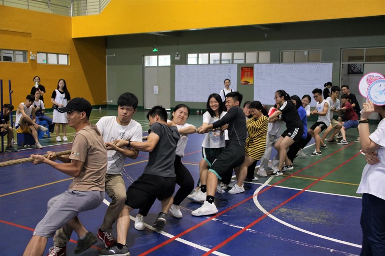 经过前面一系列游戏的热身,我们迎来了全场“高潮”的环节——拔河比赛。随着哨声一响,选手们像一只只虎虎生威的猛虎一样用力拉扯,虽然汗如雨下,手掌也被磨得发疼,但是每一个人都把自己的力气使在那根长长的绳上,心也紧紧地系在一起。