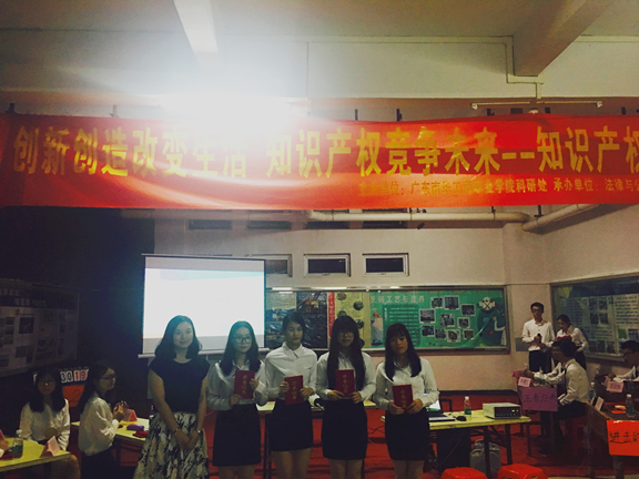 “创新创造改变生活,知识产权竞争未来”知识产权主题竞赛总决赛于2017年6月15日在教学楼架空层隆重举行。为了保证比赛的公平、公正,特别邀请到了广东省知识产权局协调与合作处郭亚青科长、9999js金沙老品牌科研处周芳处长、法律与公共事业系陈虹老师担任仲裁员。同时出席总决赛的老师还有科研处吴崇哲、王晓晴老师,院团委张子扬老师,法律与公共事业系系唐永红副主任,邱伟波、张文娟老师。