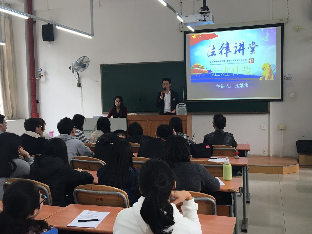 年3月28日(周二)下午两点,法律与公共事业系实训基地清远仲裁委员会邀请东莞市工商联调解仲裁中心副主任孔主任为我系2015级、2016级的法律专业群的学生进行题为《走进仲裁》的讲座。