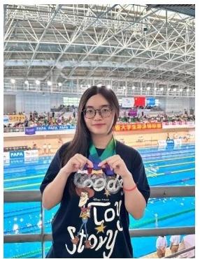 2022年广东省大学生游泳锦标赛女子100米蝶泳冠军,50米蝶泳亚军,4x50米男女混合泳接力第三名;