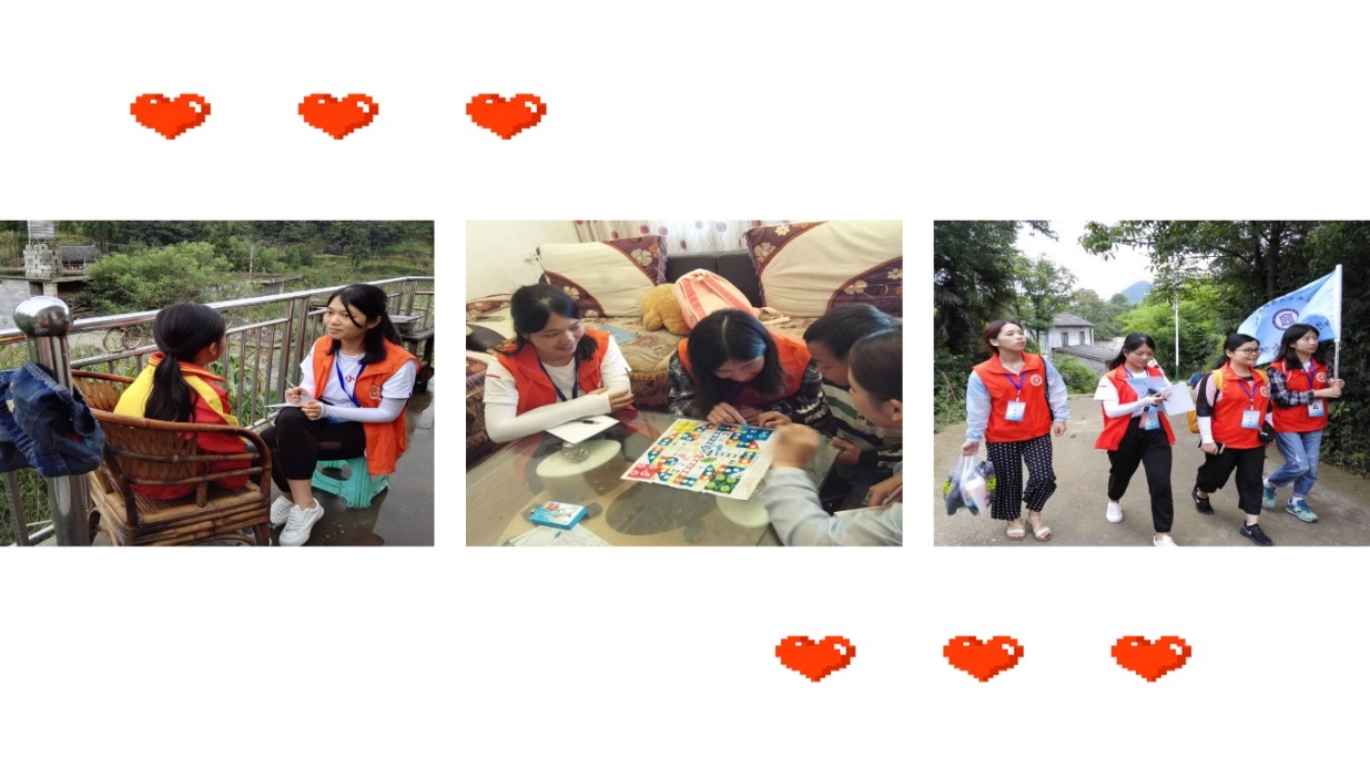 在村干部的帮助下,四支小分队深入到庆丰村、跑马村、永丰村、迎丰村和红丰村,共探访了22名困境儿童、12名留守老人。服务队通过一对一的深度访谈了解到了困境儿童的生活、学习、心理状况,以及留守老人的生活、健康状况,并向访谈对象送上了慰问品。