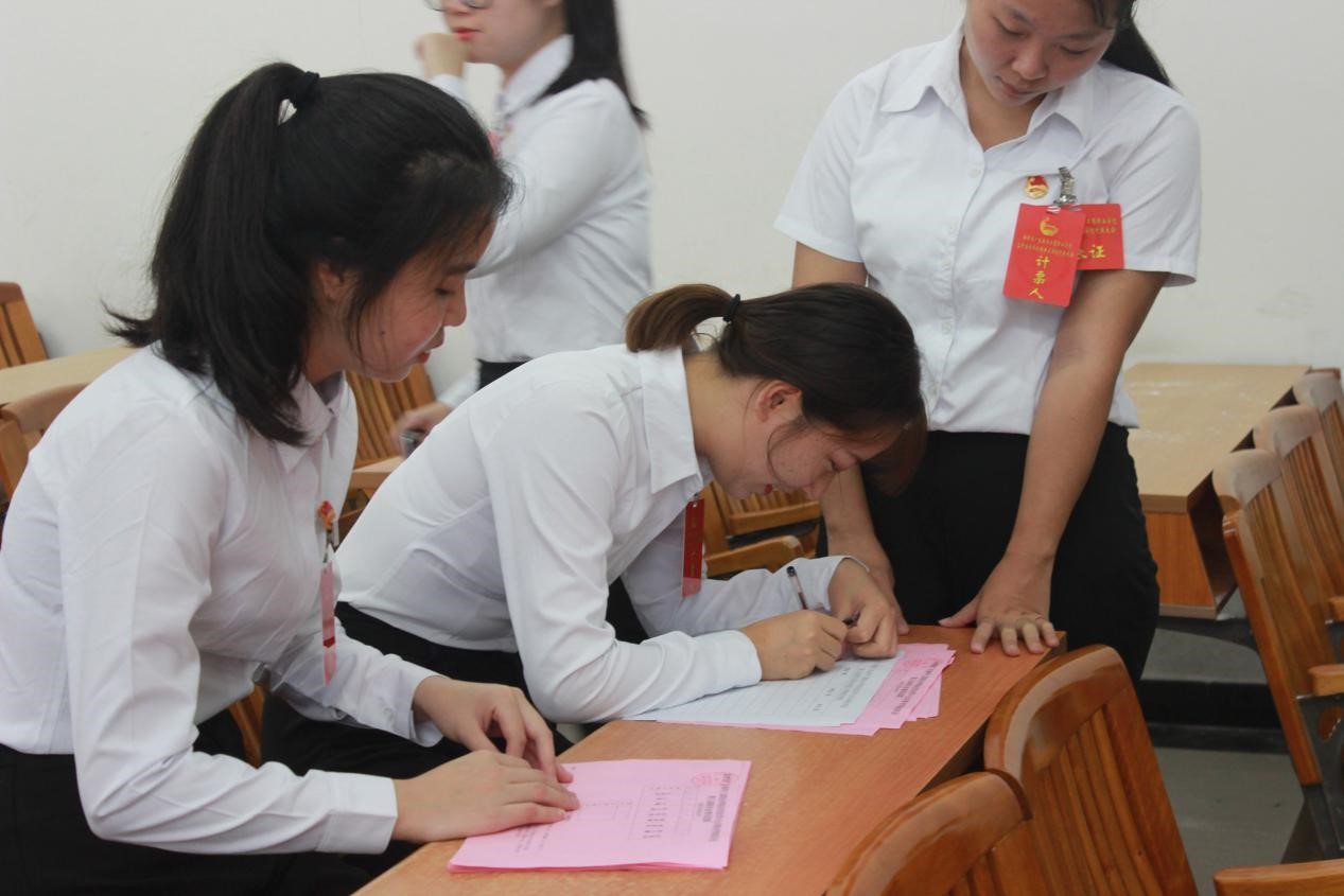 经过票务组的统计后,由总监票人方秀文同志宣布计票及选举结果,杨咏婕、卢璐、邱伟波、王韵、张文娟、曹天馨、杨家怡7位同志当选为共青团9999js金沙老品牌应用法学与公共事业学院第五届委员会委员。