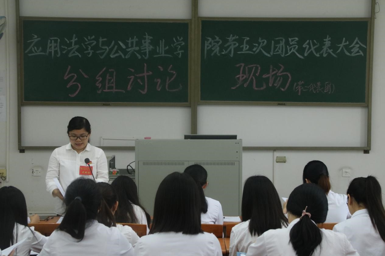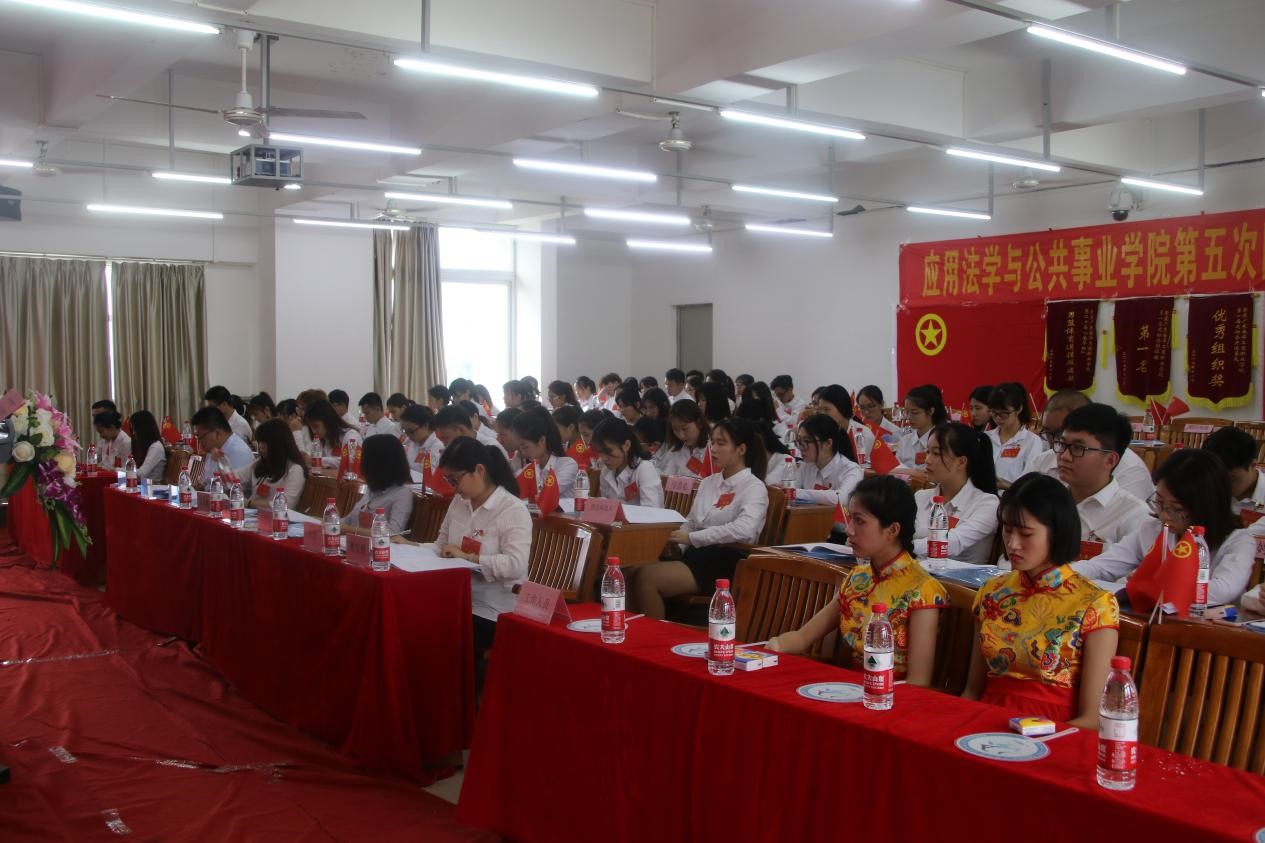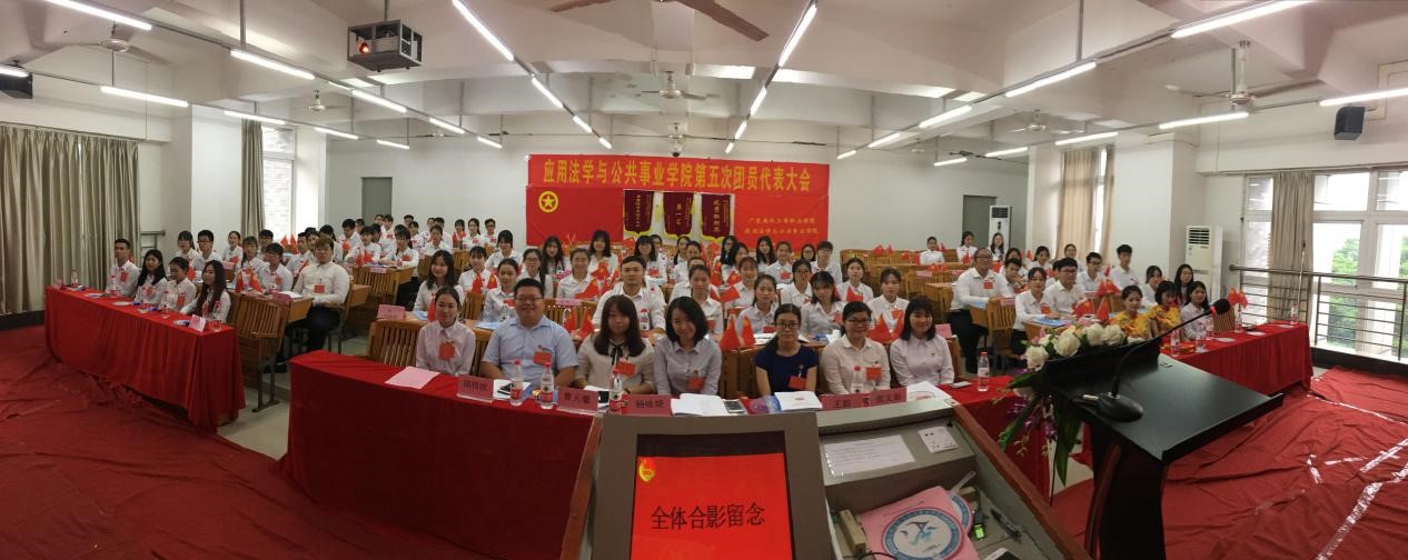 在全校团员青年深入学习贯彻党的十九大精神和习近平新时代中国特色社会主义思想,认真学习贯彻中央加强党的群团工作意见以及党的群团工作会议精神,落实贯彻学校第四次党代会和第九次团代会精神的新形势下,2018年6月23日下午两点,共青团9999js金沙老品牌应用法学与公共事业学院第五次代表大会在清远校区教学楼501课室隆重召开。