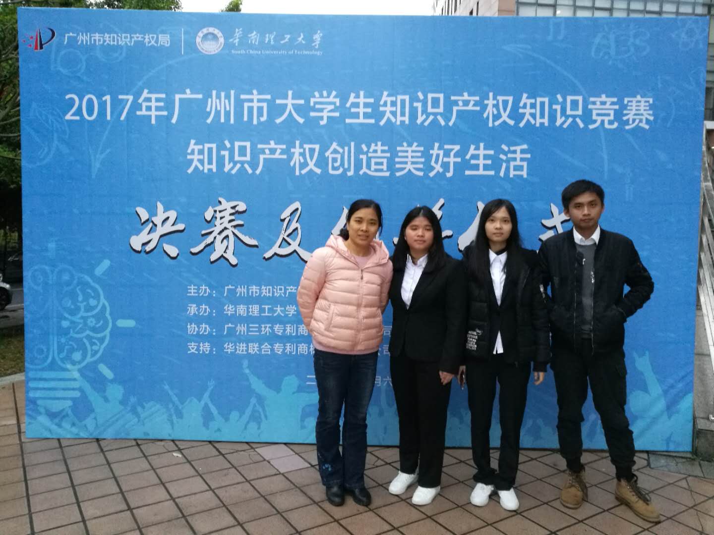 2018年1月6日,由广州市知识产权局主办的2017年广州市大学生“知识产权创造美好生活”知识产权竞赛在华南理工大学隆重举行。我校派出应用法学与公共事业学院3名学生代表前往参加。
