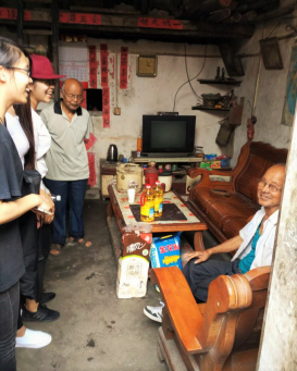 来到蟠龙村后,同学们热情高涨,迫切奉献出自己的微薄之力。在蟠龙村妇女主任的陪同下,我们参观了祠堂等地,全班分成五个小组,分别探望和慰问了村里的五保户,送去关怀和温暖。他们见到我们非常开心,我们耐心的与他们交谈,了解他们目前的生活状况,聆听他们讲过去的故事。