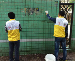 活动分为两部分,分别由两个小分队共同合作完成。第一个小分队是“牛皮藓”小分队,由三个工作人员带领三个志愿者一起去清理燕塘社区的牛皮藓,通过社工与志愿者的努力,燕塘社区的墙壁恢复了原本整洁的样子。