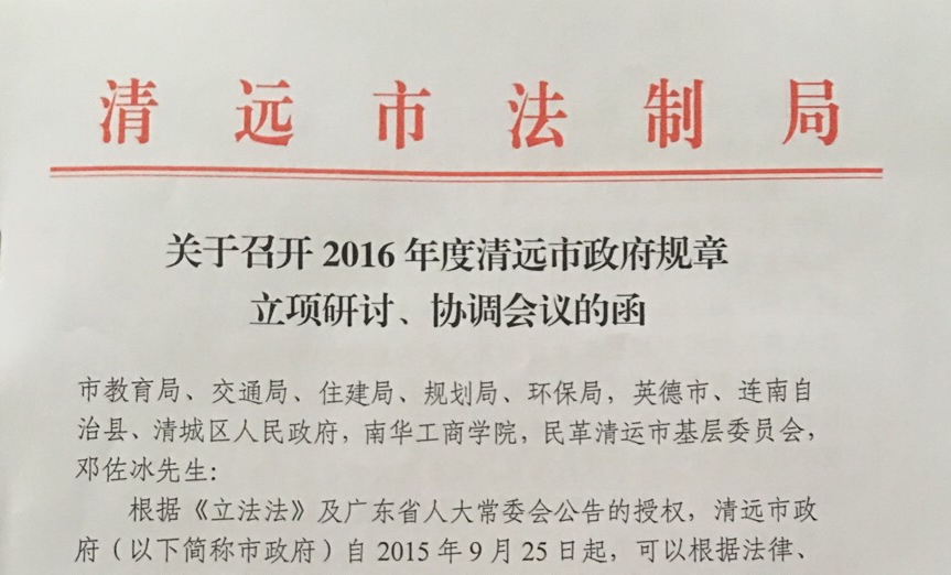 我院为清远市法制局唯一一家高校政府规章立项审查单位。