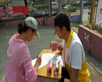 11月5日早晨伍仙桥社区实习小组成员早早赶到活动地点红旗市场进行场地布置,9点活动正式开始。本次活动一共有四个环节,签到、有奖垃圾分类知识问答、环保创意DIY、填写反馈表及领小礼物。