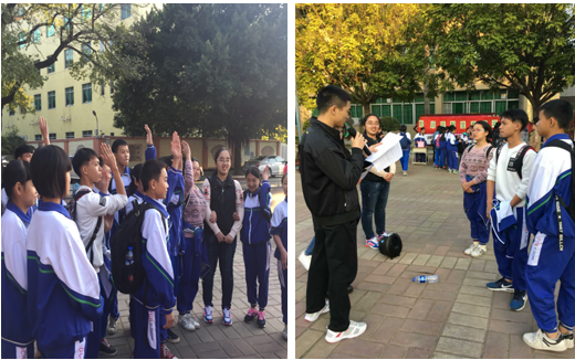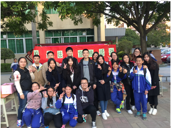 16日下午4点,15社工班蓝之梦组进入东城一中开展了“校园法制宣传活动”。本次活动主要是提升中学生的法制观念,帮助同学们健康成长。在本次活动中,我们邀请了思政部甘小华老师与一名16级的同学参与其中。