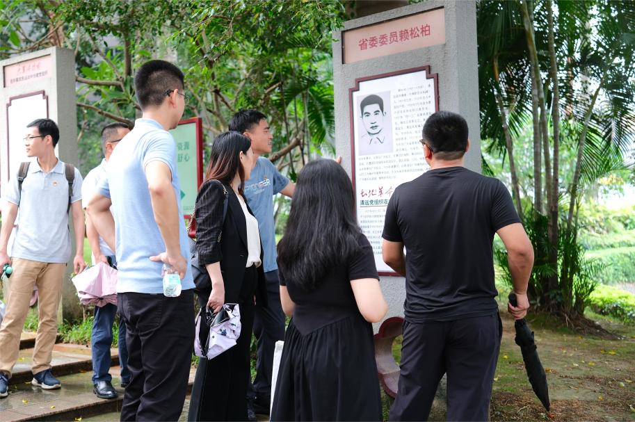 党员教师们首先参观了廉洁文化主题公园,通过观瞻生动形象的人物塑像,阅读廉政历史典故,深入了解廉政文化的内涵和重要性,学习感悟革命先烈清风傲骨的高尚情操。随后,在清远综合与保卫党支部书记方永航同志的带领下,全体党员面向党旗重温入党誓词。