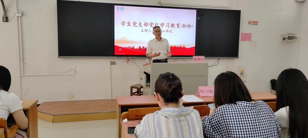 5月29日,财务金融学院党支部书记张朝山为学生党支部全体教师、学生入党积极分子讲授党纪学习教育专题党课。