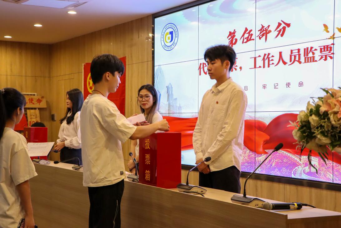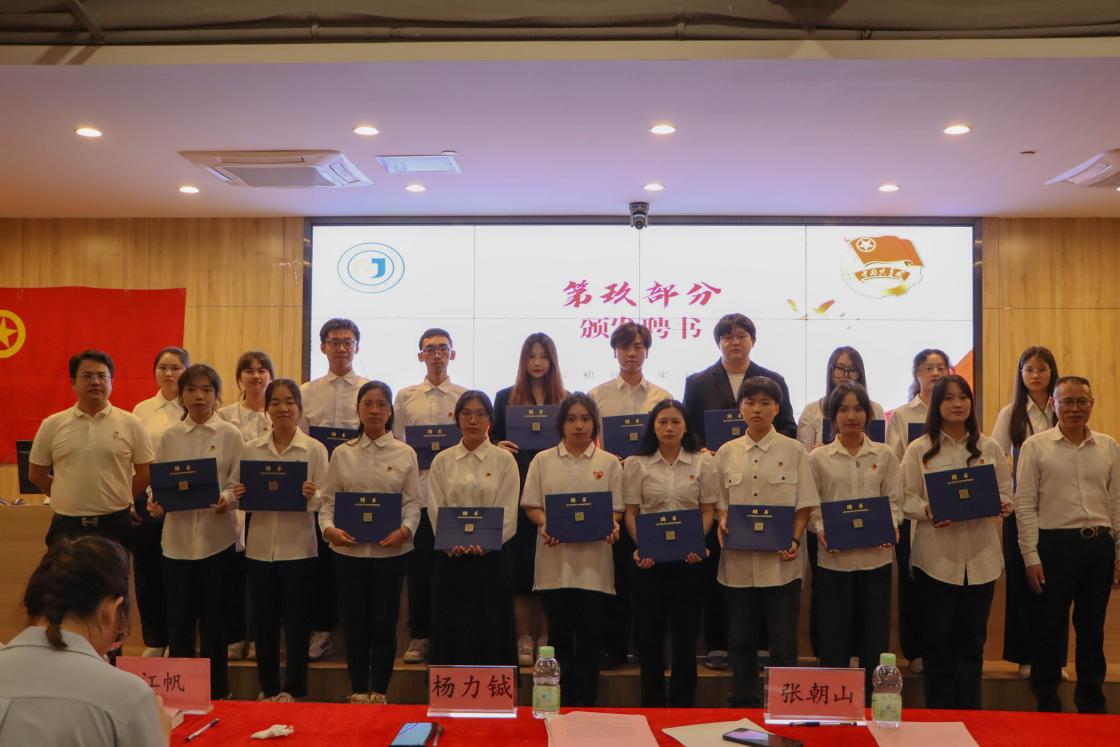 随后由财务金融学院党总支书记张朝山,团委书记杨力铖上台为新一任团委学生干部颁发聘书。