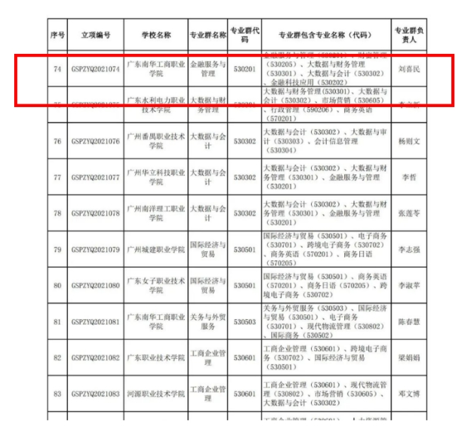 金融服务与管理专业群于2021年10月成功立项为广东省高水平专业群。