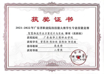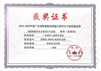 物流学生参加2022-2023年广东省物流技能大赛荣获一等奖2项