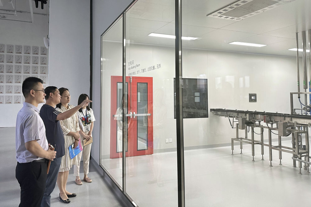 海南省商务厅外商投资管理处党员干部在海口华熙厚源生物科技(海南)有限公司调研(2023年6月19日摄)。学习贯彻习近平新时代中国特色社会主义思想主题教育开展以来,海南省商务厅外商投资管理处坚持学深悟透笃行,将主题教育与推动海南自贸港外资工作相结合,以对外招商引资工作为抓手,全员参加调研、了解外企诉求、梳理问题难点、做好跟踪服务,高质量推动主题教育向深处、细处、实处走。新华社发