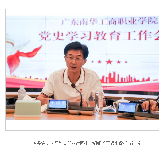 6月29日,省委党史学习教育第八巡回指导组组长王硕平在广东省总工会副主席杜玲陪同下,率队来我校开展党史学习教育工作督导检查,通过听取汇报、查阅资料、座谈交流等方式,对学校党史学习教育开展情况尤其是党史进校园相关工作进行全面指导。学校党政领导班子、师生代表参加会议。