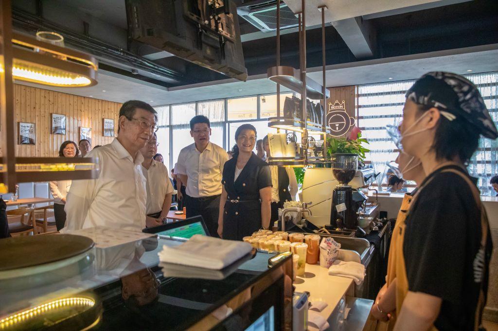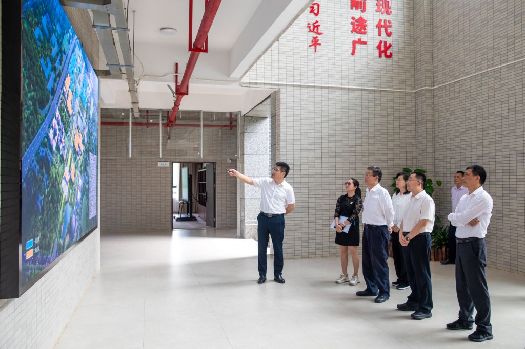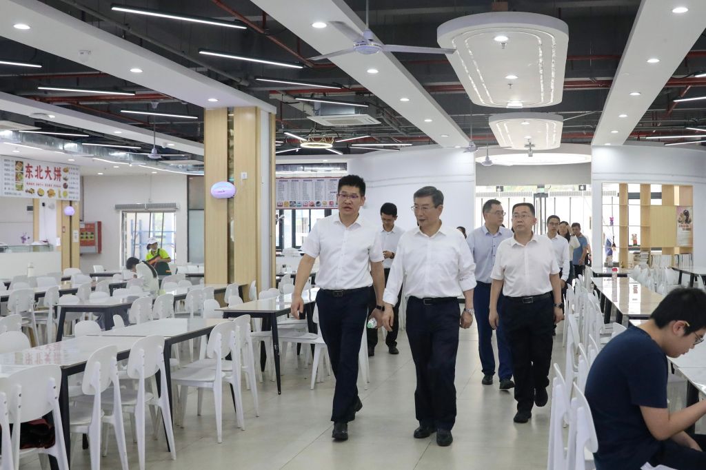 黄宁生一行在校园里深入调研校园安全管理中心、粤菜师傅·烹饪实训中心、清远“五大百亿”农业产业电商基地、人防在建工程、劳模楼、国匠楼等场所,实地考察校园规划和安全体系建设、创新创业与技能人才培养、电商赋能清远“五大百亿”农业产业发展和劳模工匠进校园等工作。他对校园规划建设理念高度认同,对学校精细化管理和数字化安全管理表示赞许,同时勉励劳模工匠导师积极走进校园,赋能学生成长成才。