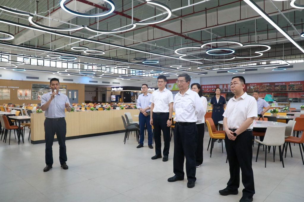 省总工会办公室主任姚文军,事务中心负责人、职工服务部副部长赵婕,南方工报总编辑张英姿,清远市总工会党组副书记、常务副主席蓝兴强,清远职教城事务中心主任段习文等陪同调研。