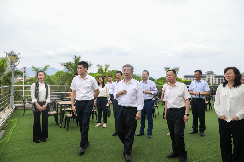 6月4日,广东省人大常委会副主任、党组副书记,省总工会主席黄宁生莅临我校清远校区深入调研。省总工会党组书记、常务副主席温文星,清远市委副书记、市长陈金銮,清远市人大常委会党组成员、副主任、市总工会党组书记、主席邓菲,市政府秘书长刘新茂等陪同调研。党委书记、校长林海等校领导班子成员参加调研。