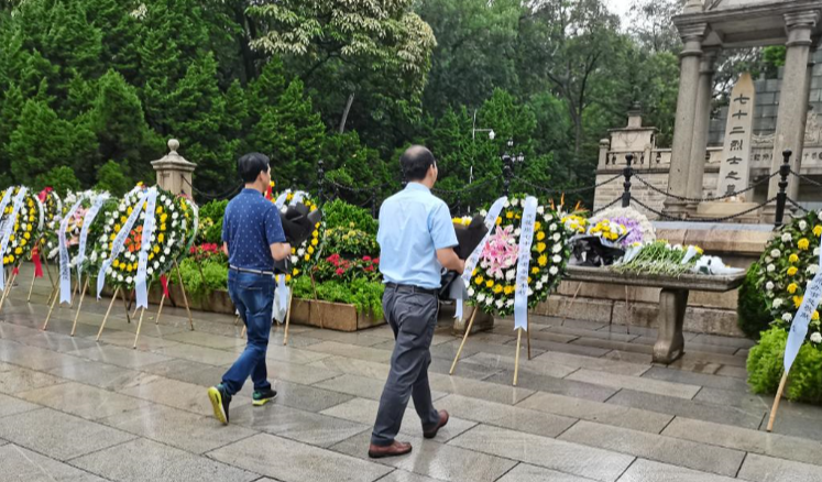2021年4月16日下午,招生与对外合作交流处党支部与教育技术与信息中心党支部7位党员同志,赴黄花岗七十二烈士墓园,祭奠在黄花岗起义中牺牲的革命烈士,并参观了《纪念中国同盟会先辈暨辛亥革命110周年图片展》。周永塔书记带领大家,学习了习近平《论中国共产党历史》中“崇尚英雄、学习英雄、关爱英雄”及“把红色基因传承好,把红色江山世世代代传下去”两个章节的内容。