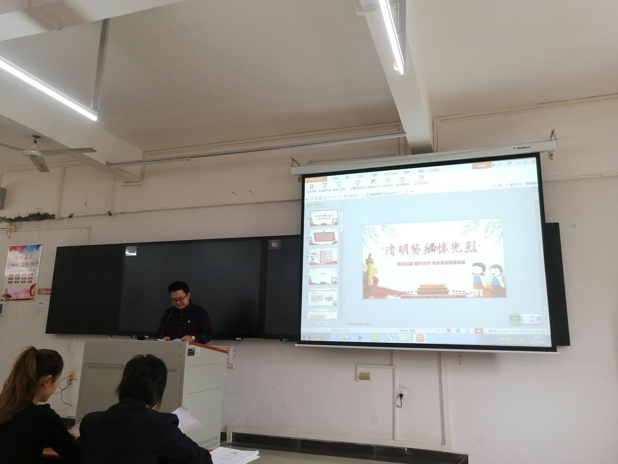 2021年4月9日下午,财务金融学院学生党支部“每周一学”及“清明祭英烈”活动在清远校区教学楼319教室顺利召开,学院党总支书记张朝山与学生支部党员、入党积极分子参加了本次会议。
