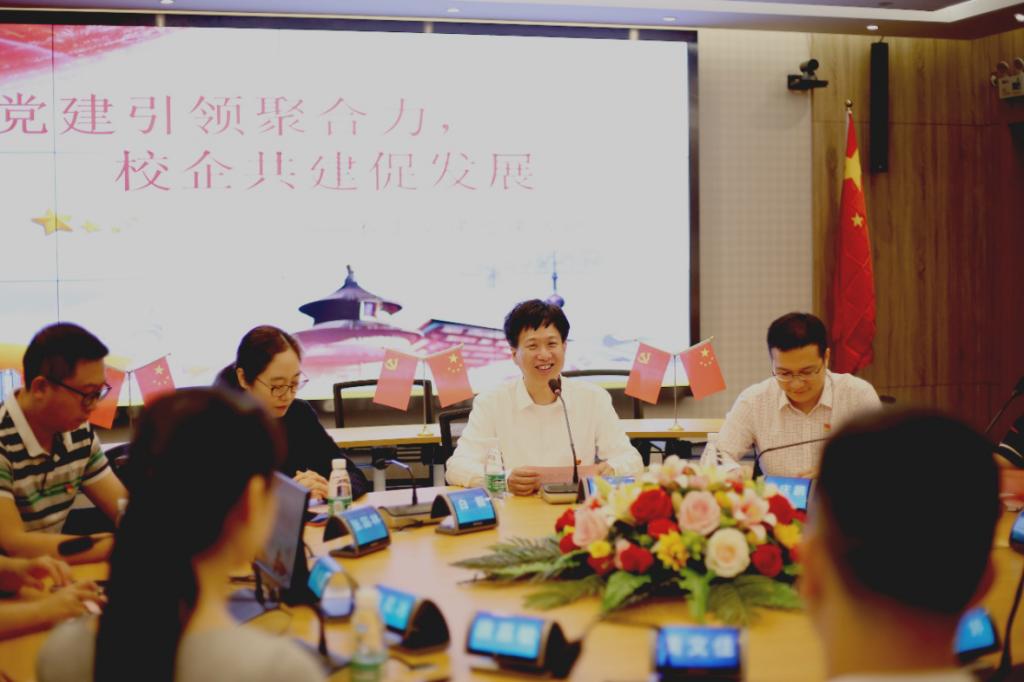 活动以“党建引领聚合力,校企共建促发展”为主题,以“校企合作,支部共建”为载体,由交流党建工作和单位基本情况、举行党建共建协议签约仪式、学习《全省党史学习教育动员大会在广州召开》讲话精神、观看《学好党史这门必修课》、参观我校智慧党建中心等五项议程组成。
