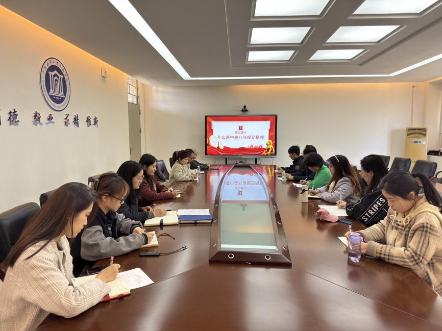 会议强调,中央八项规定及其实施细则精神是党中央加强作风建设的重要举措,是全体党员干部必须长期坚持的行为准则。全体党员、教师要深刻领会文件精神和时代内涵,将其作为锤炼党性、提升政治站位的“必修课”,切实增强纪律意识和规矩意识,坚决反对决形式主义、官僚主义、享乐主义和奢靡之风,以实际行动践行党的优良传统,为学院发展营造风清气正的良好环境。