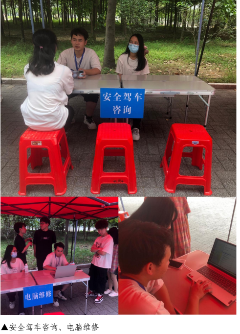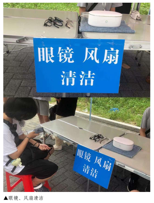 活动现场提供了血压血糖测量、健康咨询、眼镜清洁、风扇清洗、手表检修保养、电脑维修、安全驾车咨询等便民服务。志愿者们分别在上午11:30-13:00、下午16:30-18:00这两个时间段为200多名师生提供了测量血压血糖、健康咨询服务,为近百名师生提供了眼镜清洗、手表检修、电脑维修、风扇清洗等服务,用实际行动践行了“雷锋精神”—全心全意为人民服务。