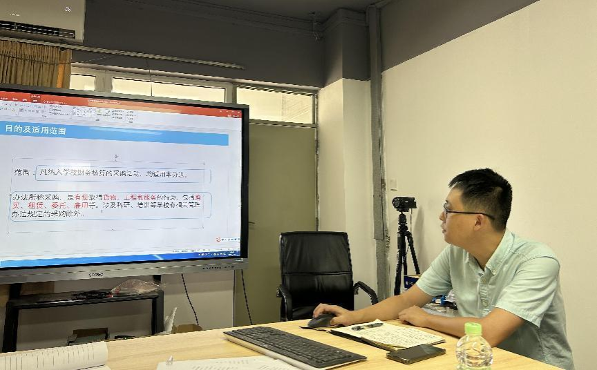 会上,党支部党员、采购中心副主任钟乐鹏从“目的及适用范围”“基本采购流程”“采购注意事项”三个方面,对采购工作进行详细、认真地业务讲解,通过浅显易懂的语言将采购政策、采购流程等知识“讲透彻、说明白”,既提高了自身业务水平,又普及了采购政策法规和业务知识。
