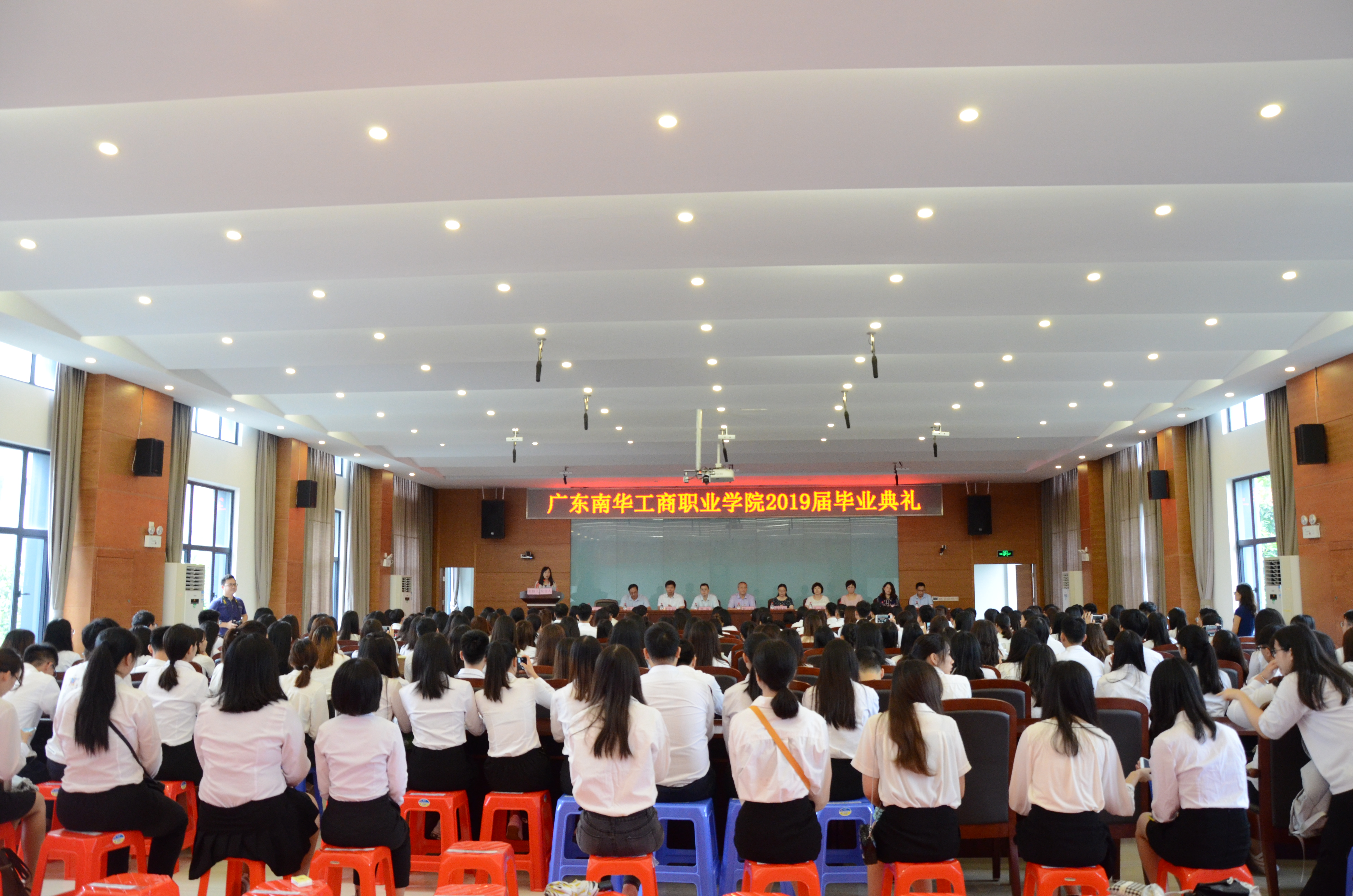 学校相关职能部门负责人宣读了《关于表彰2019届优秀毕业生的决定》 和2019届毕业生名单。毕业生依次上台,从在座嘉宾手中接过毕业证书。