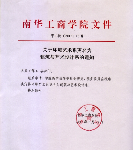 关于环境艺术系更名为建筑与艺术设计系的通知