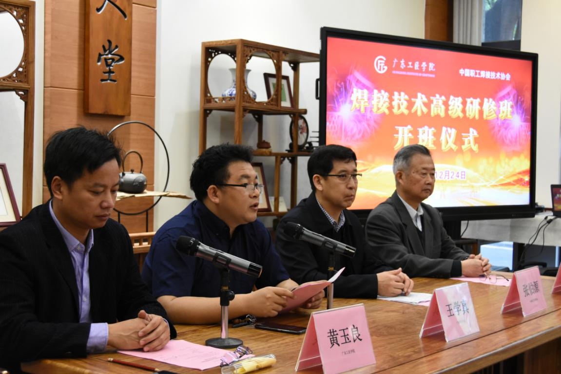 2019年12月21日由广东工匠学院与中国职工焊接技术协会联合举办的智能制造焊接技术高级研修班于在广东工匠学院顺利开班,共有来自广东省内各行业的30余名焊接高级技师和技师从业人员出席了开班仪式并参加研修班的学习。中国职工焊接技术协会张伯源秘书长、广东工商职业学院副校长、合肥通用机械研究院教授级高工戈兆文、广东工匠学院常务副院长王学真出席开班仪式并讲话,广东工匠学院执行副院长黄玉良主持开班仪式。