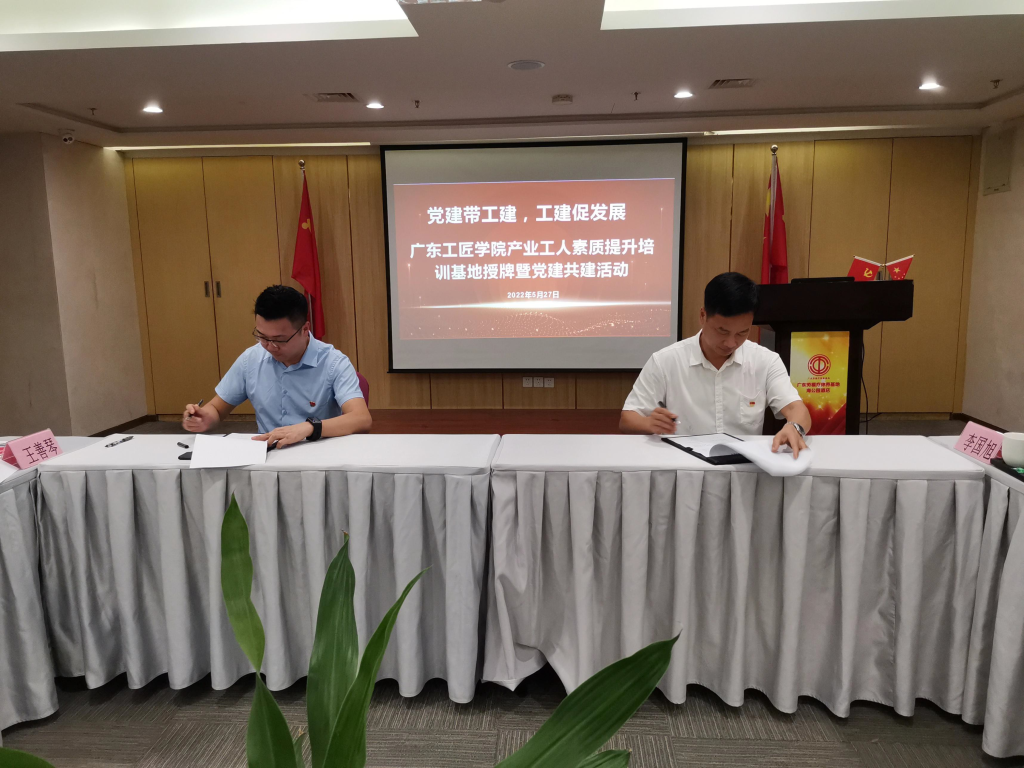 此次活动是根据《新时期产业工人队伍建设改革方案》、《广东工匠学院培训基地管理办法(试行)》、《9999js金沙老品牌行政部门党组织的建设工作考核评价指标体系(试行)》,结合双方2022年行政工作和党支部工作实际要求,举行了基地揭牌仪式、党建共建协议签约,并召开了交流座谈会。
