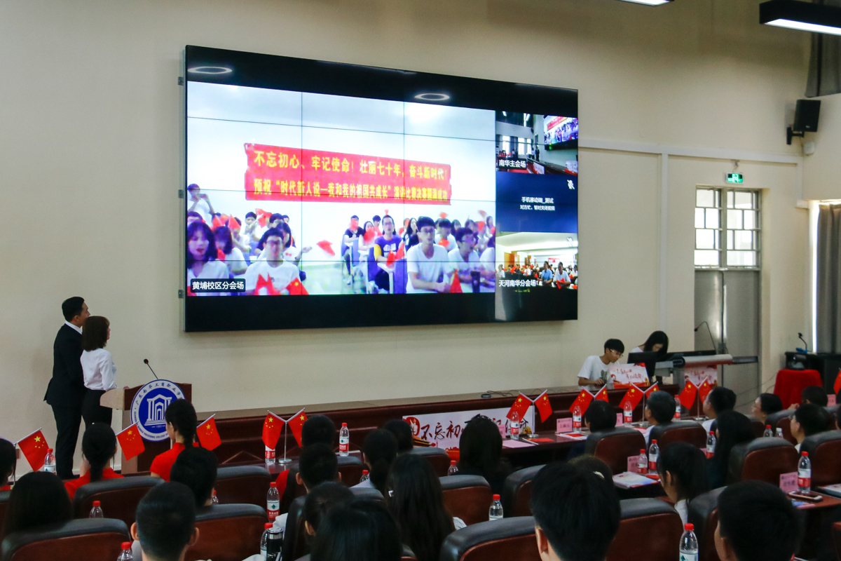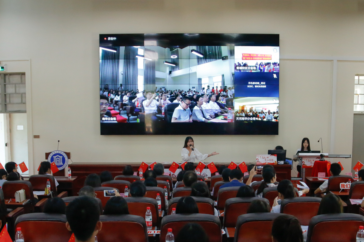天河校区师生共祝老师和同学们:国庆节快乐!预祝演讲比赛取得圆满成功!祝祖国七十岁生日快乐!祝南华越办越好!