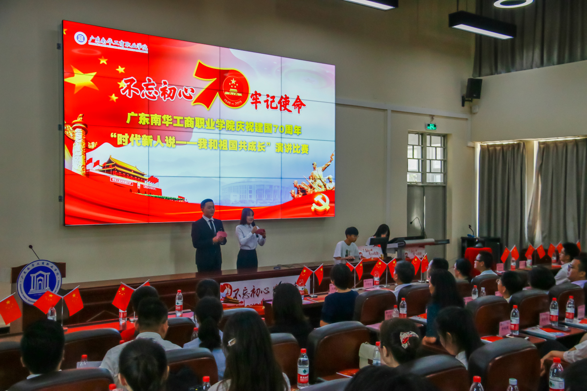 为隆重庆祝中华人民共和国成立70周年,学校党委以“追梦新时代 阔步新征程”为主题,推出“十个一”系列活动,今天我们在这里举行的是“十个一”里的第六场活动——师生演讲比赛。本次演讲比赛旨在聚焦培养担当民族复兴大任的时代新人,突出“时代新人说——我和祖国共成长”的鲜明主题,讲好中国故事,讲好中国共产党故事,讲好新时代中国特色社会主义故事,激励广大师生特别是广大青少年增强中国特色社会主义道路自信、理论自信、制度自信、文化自信。通过演讲比赛的形式,满怀感恩之心,向祖国母亲献礼。