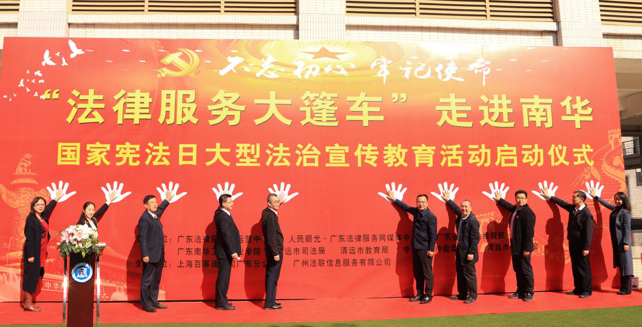 2019年12月4日,是第六个国家宪法日。根据《广东省教育厅关于开展2019年教育系统“宪法宣传周”系列活动的通知》,结合我校“12.4”国家宪法日暨普法宣传月普法工作安排,我校联合广东法律服务网运营中心、人民眼光·广东法律服务网媒体中心、广东省总工会维权部、清远市司法局、清远市教育局、中国广州仲裁委员会、清远市律师协会举办“法律服务大篷车”走进南华——国家宪法日大型法治宣传教育活动,启动仪式在我校清远校区隆重举行。