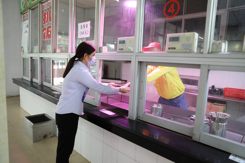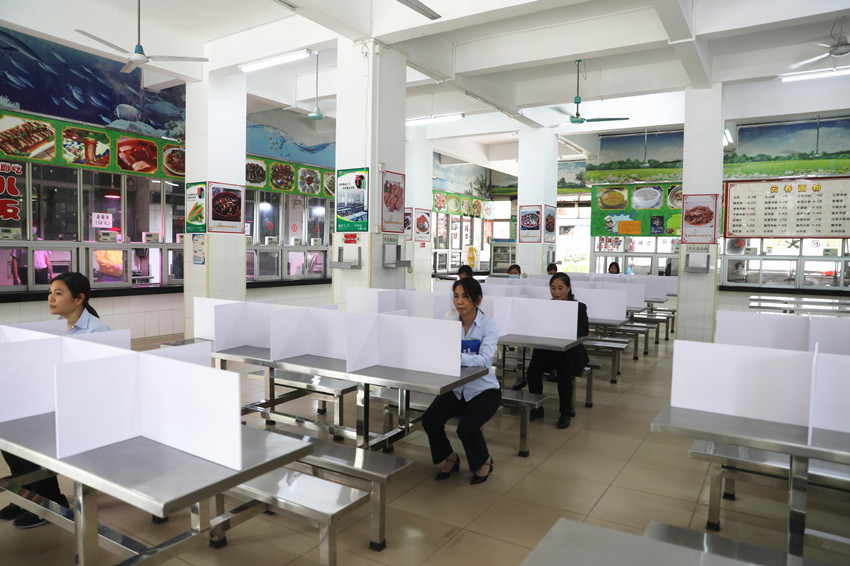 食堂分发套餐,即取即走,实行分区用餐,到餐位坐下吃饭的最后一刻才摘口罩,就餐结束后立即佩戴口罩并离开。