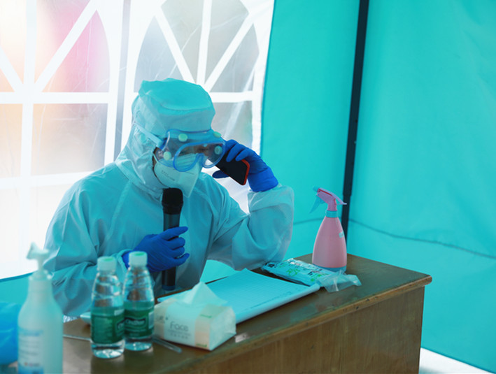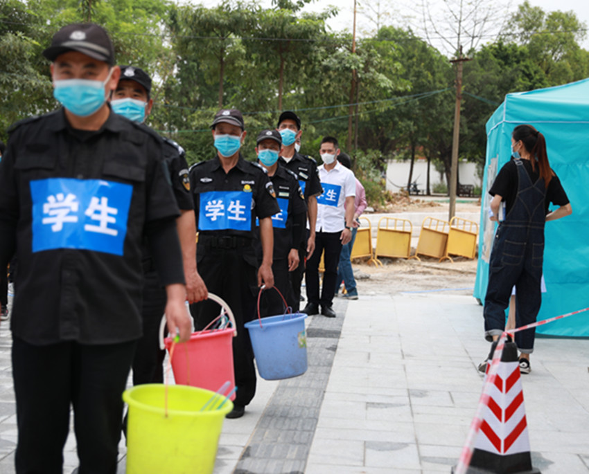 信息联络小组随即通知各小组,身穿防护服的医疗保障小组人员迅速到达,带该学生绕开人群,到临时隔离室内。