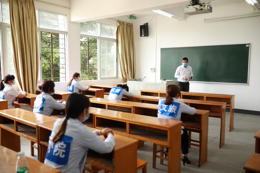学校防控疫情专项工作组组长、纪委书记韦秀华作演练动员讲话。韦秀华强调,全体教职工要高度重视、夯实责任,把疫情防控工作作为当前最重要的工作抓实抓细,严防死守不大意,持续作战不松懈。