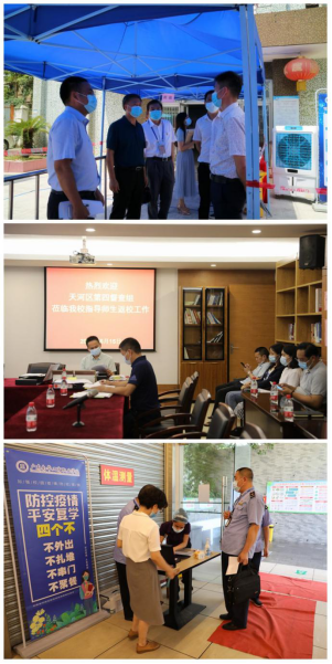 图一:天河校区师生返校督查组现场;图二:黄埔校区师生返校督察组现场