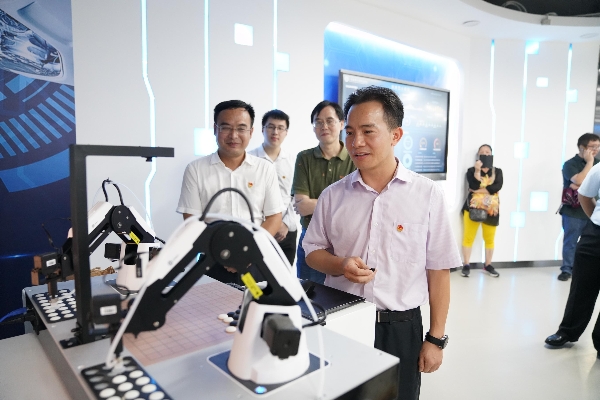 梁均达一行参观了智慧党建示范中心、酒吧实训室、2020年创新创业教育成果展、智慧学习工场、广东工匠学院展厅、创新创业学院、圆桌会议室和报告厅等,调研我校共青团工作开展情况。在智慧党建示范中心,梁均达深入了解我校党建带团建工作的情况。在酒吧实训室,梁均达品尝了我校学生制作的咖啡和茶点,对学生烹饪技能水平给予了高度赞赏。在2020年创新创业教育成果展,梁均达仔细了解我校近年来在“攀登计划”、“挑战杯”竞赛、职业技能竞赛等方面取得的成效,对我校创新创业教育取得的新突破给予高度评价。在智慧学习工场,梁均达兴致勃勃地了解了大数据中心建设情况,并体验与人工智能机器人下棋。在广东工匠学院展区,梁均达了解了我校在服务青年职业技能提升工作的情况。