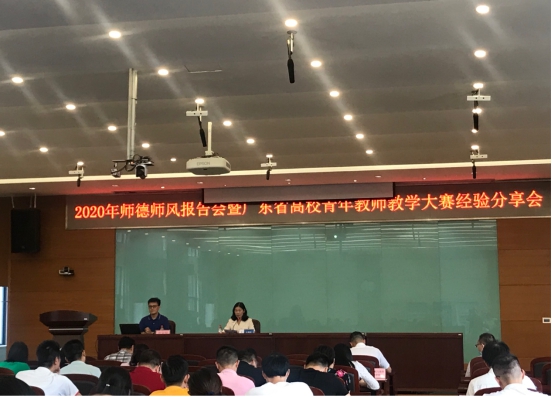 2020年9月25日,我校2020年师德师风报告会暨高校青年教师教学大赛经验分享会在天河校区行政楼四楼举办。华南师范大学马克思主义学院副教授张永刚受邀作教学大赛经验分享报告,副校长王荣光主持,全校近120名教职工参加了报告会。