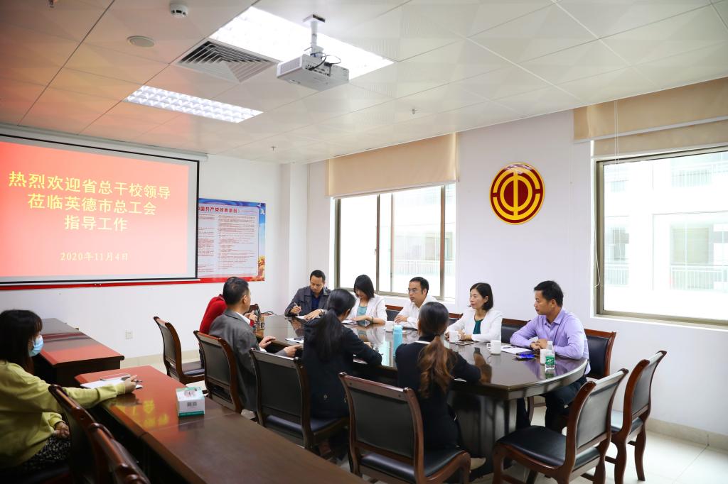 签约仪式结束后,马栩生带领相关部门负责人一众前往英德市总工会,实地调研英德市工人文化宫的建设和“广东工匠学院英德学院”的发展情况。英德市总工会常务副主席何可造陪同调研。