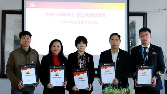 随后,党政办支部、外语外贸学院总支部、文化旅游学院支部、深航广州分公司运行党支部及深航广州分公司飞行党支部代表各自介绍了支部的特色党建,并共同签署了《党支部党建共建协议书》。