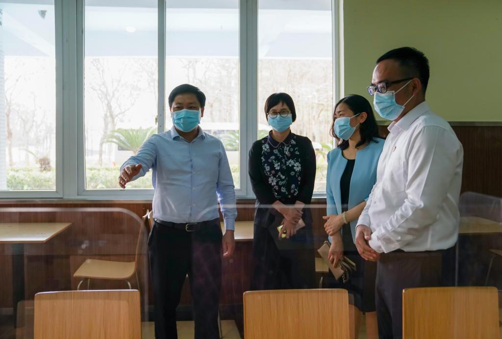 许典辉一行实地考察了学校门岗、健康观察室和学生食堂,查阅了相关台账,详细询问了解了校区校级领导值班值守情况、师生疫苗接种情况、学生进出校门审批情况、疫情防控工作应急预案拟定工作等,对学校疫情防控工作给予肯定。