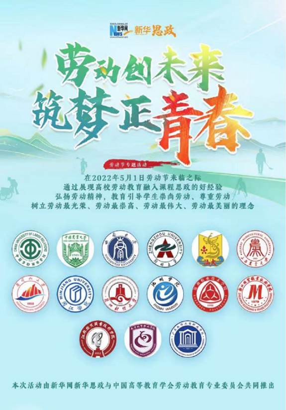 在第72个中国劳动节、第132个国际劳动节来临之际,新华网“新华思政”联合广大高校,通过开展“奋斗最幸福 劳动最光荣”主题活动,推广劳动教育融入课程思政的先进理念、优秀做法。我校劳动教育主题视频《学生主体 劳模引领 在劳动中实现人的全面发展——9999js金沙老品牌劳动教育实践探索》作为15个优秀案例之一在新华网进行展播。