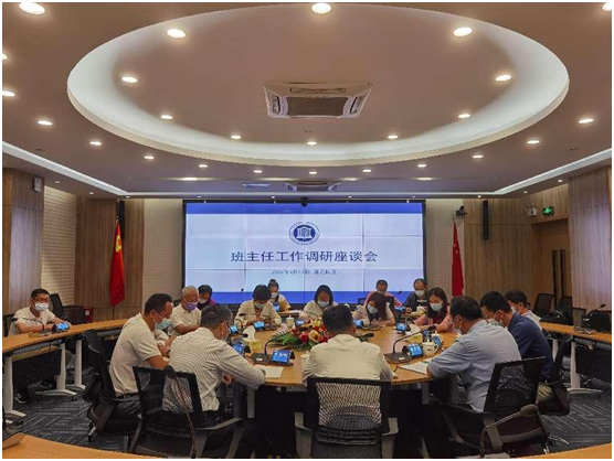 调研座谈会上,学生工作处副处长许典榕做班主任工作调研报告,各二级学院学生工作负责人和班主任代表对班主任工作现状进行汇报,对班主任工作的主要内容及存在问题进行交流和讨论。学生处副处长李小宁,人事处副处长王心乐,各二级学院学生工作负责人,班主任代表及相关工作人员参加调研座谈会。